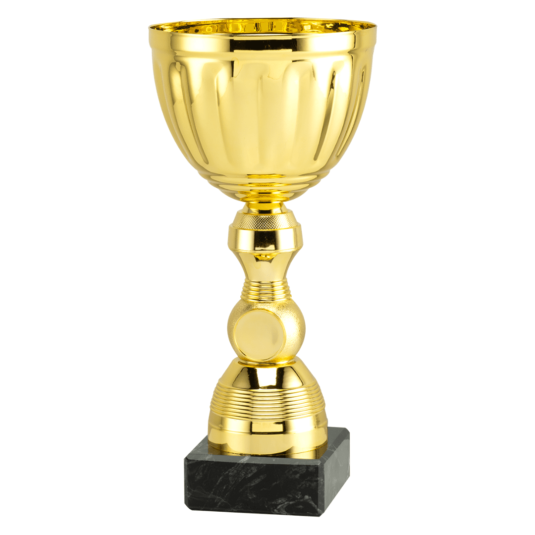 De Gouden Trofee Groningen is een stijlvolle en tijdloze sportbeker die perfect past bij iedere prijsuitreiking. Deze elegante beker combineert een metalen goudkleurige cup met een stevige marmeren voet, wat zorgt voor een luxe en professionele uitstraling.
