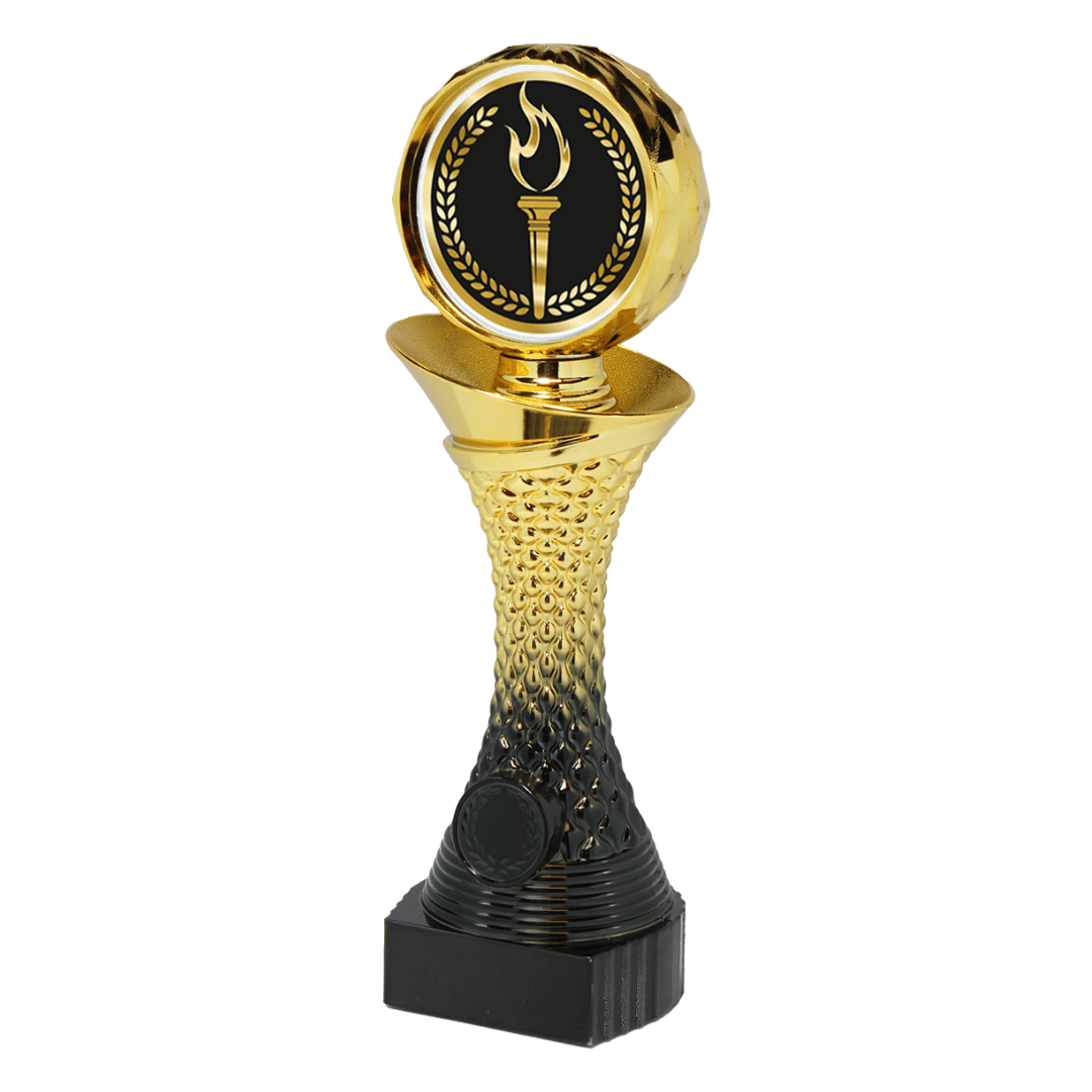De goud-zwarte uitstraling geeft de trofee een luxe look, terwijl het kunststof materiaal zorgt voor een scherpe prijs. Geschikt voor zowel jeugd- als seniorenwedstrijden en inzetbaar voor vrijwel iedere sport.
