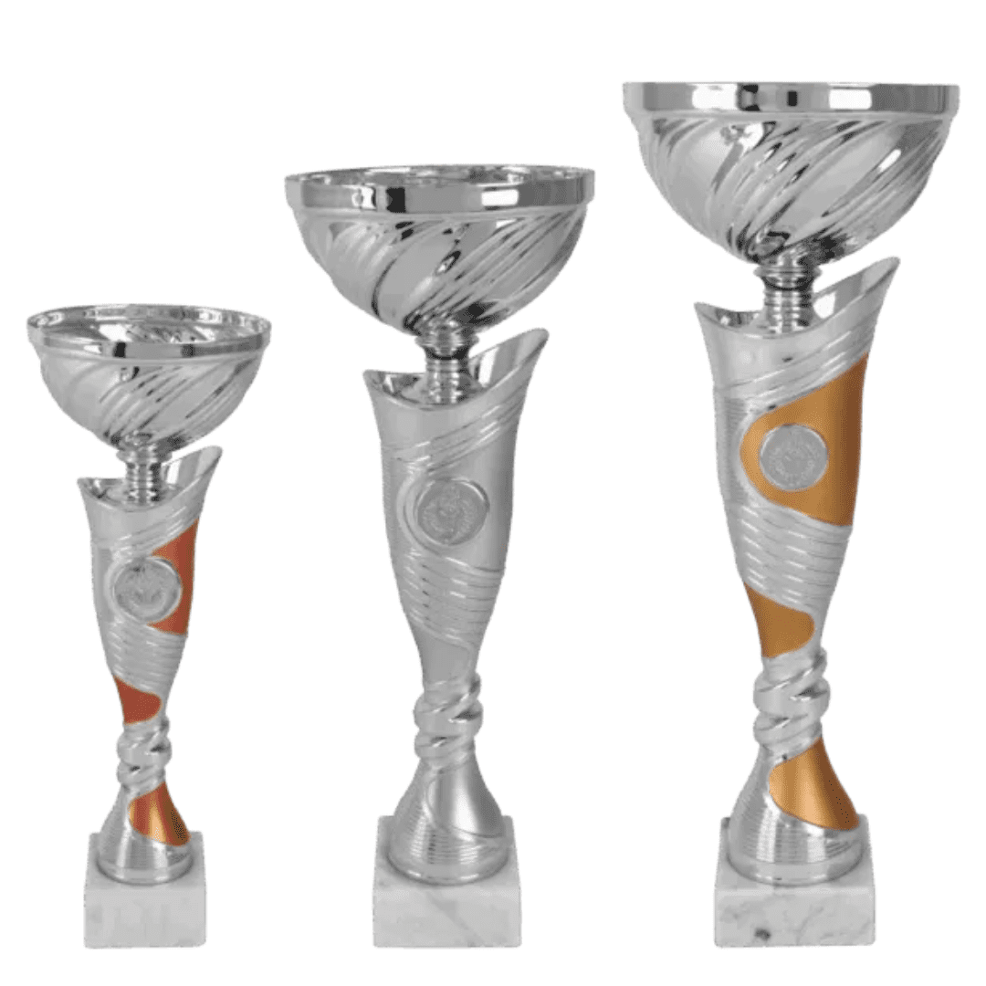 De Trofee Lorenzo is een stijlvolle serie met een moderne vormgeving en luxe uitstraling. Door de combinatie van zilver met goud- en bronsaccenten is deze trofee perfect voor complete podiumseries. Ideaal voor sportverenigingen en evenementen die een professionele prijsuitreiking willen neerzetten.